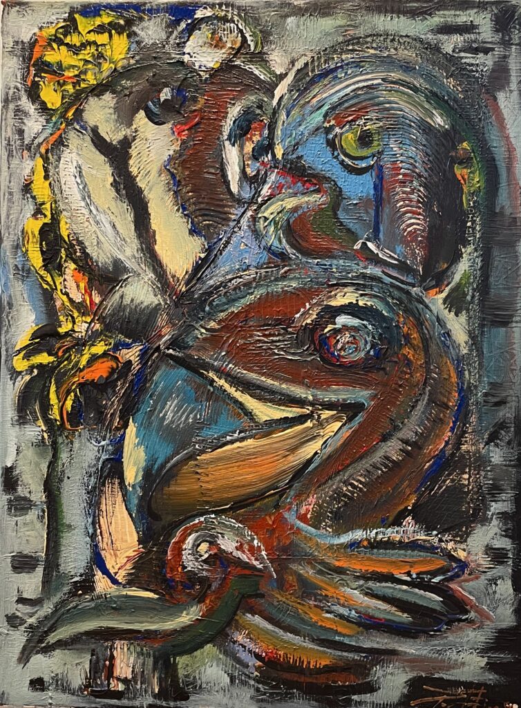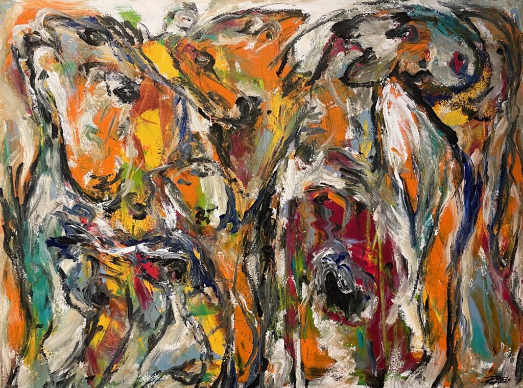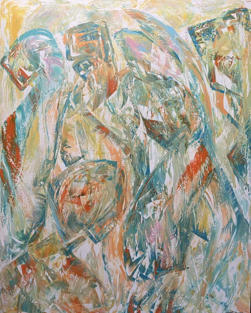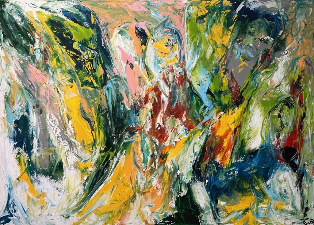 Baggrunden er livet og omgivelserne, der via farver, former og varierende materialer transformeres til billedlige udtryk.